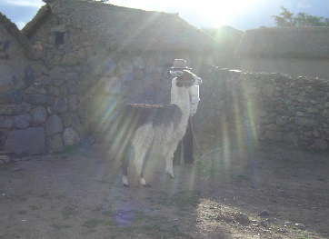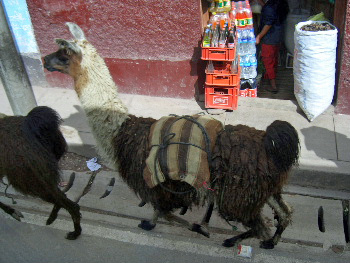 山羊やアルパカも、荷物を運ぶ、狭い道に人も動物も、どこどこ!楽しいね