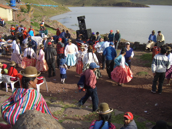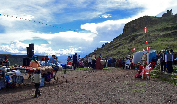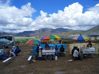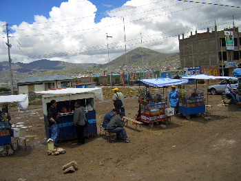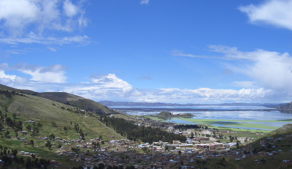 クスコよりさらに、高地3855mのプーノ、そこには汽船の航行する湖として