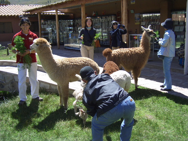 広場の中心では、アルパカやリャマ、ビクーニャの主役がおで迎え