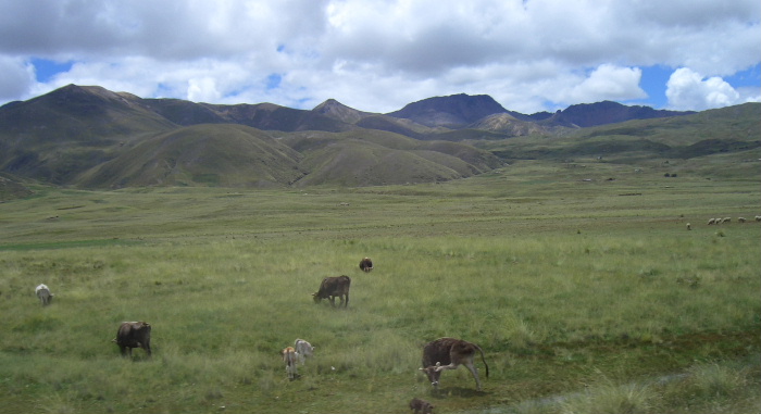 ここからは、400mほど下ったところが、プーノの街、牛さんがうらやましい!
