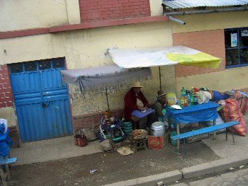ここにも、おみやげ物を売る露天が並ぶ、写真モデルのおばさんも