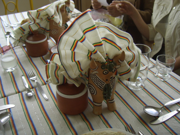 ナプキンが、 「厄除けの牛のおき物」 にセットされて出てきた