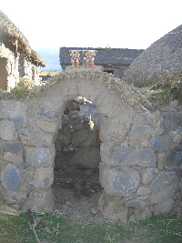 入り口は2つ、動物用と人間用、門の上の魔よけが違うとか?