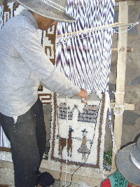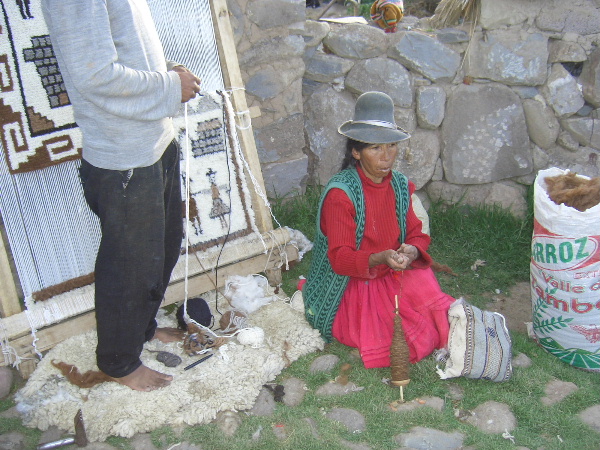 アルパカの糸紬を見せてくれた、お姉さんの帽子と服が素敵!