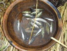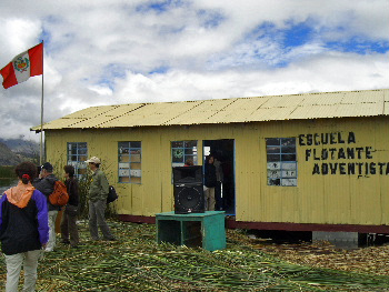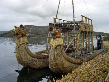 観光用の葦船、大人数用だ、これで少し離れたところの、小学校のある