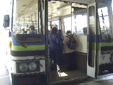 シャトルバスも側面だけ出なく 後部も開く、フェリーのようだ。