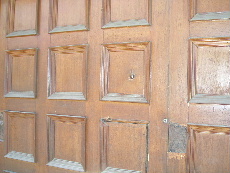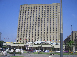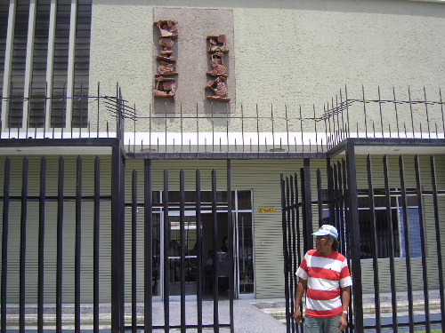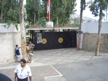 途中、元日本大使館に立ち寄る、ドアには銃弾の貫通孔が、右は新大使館