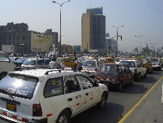 広場を離れて、次ぎの観光に、道路はバスの洪水、中型バスがひしめく