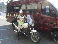 コンドルトラベルが、今回の現地旅行社。バスと一緒に来た白バイ