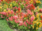 の前には、お花が一杯、花壇が広がっている。 .