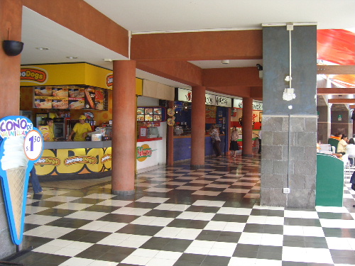 昼食会場は、このモールの奥のレストラン、庶民の生活空間は開放的