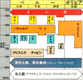 左の年代図で説明すると、インカ時代の以前に、「プレインカ」の延々たる