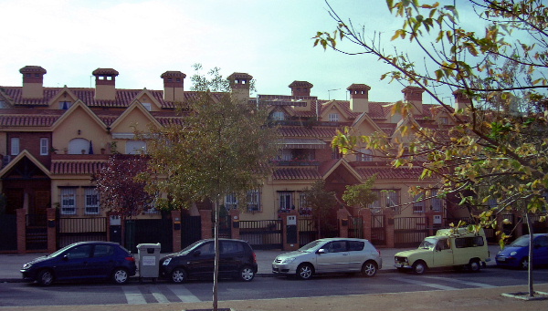 に向う。道路沿いには、新興住宅があちこちに、連棟形式が目立つ