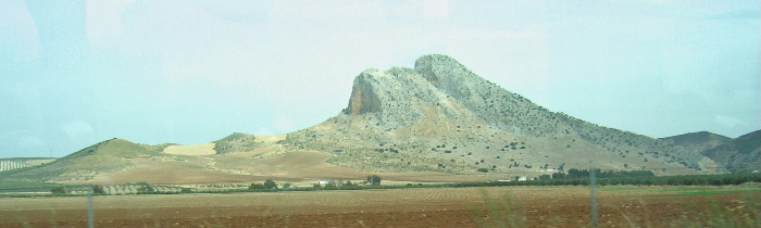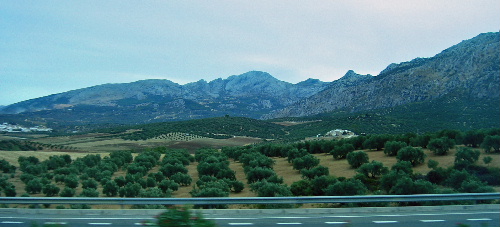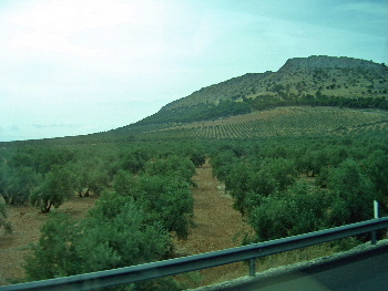 街中を過ぎると、道路の両側はオリーブと遠景に砂地の山肌を見る