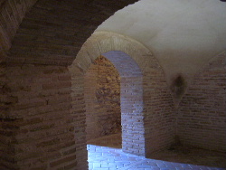 シンプルな中庭もある、トンネルのような通路と小さな部屋
