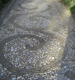 夏の離宮へ行く間の通路は、ご覧のように小石のモザイクが幾種類も