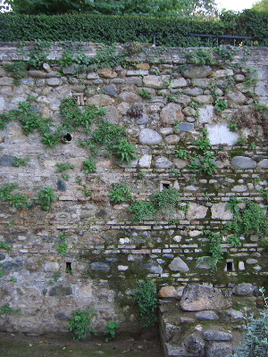 いろんな形の石を組み合わせた土塁も楽しい。建物の階に合わせて通路も
