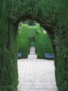 門をくぐると、糸杉のアーチが迎えてくれる、碁盤の目のような