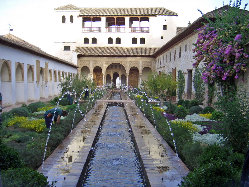 10分ほど歩いて、小さな橋を渡ると、ヘネラリーフェの入り口、大きな