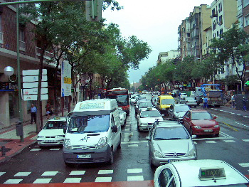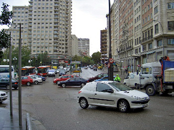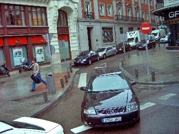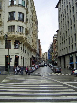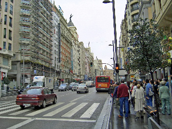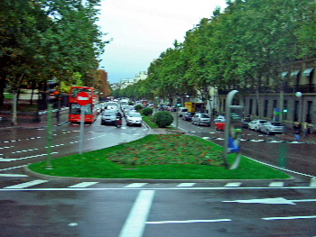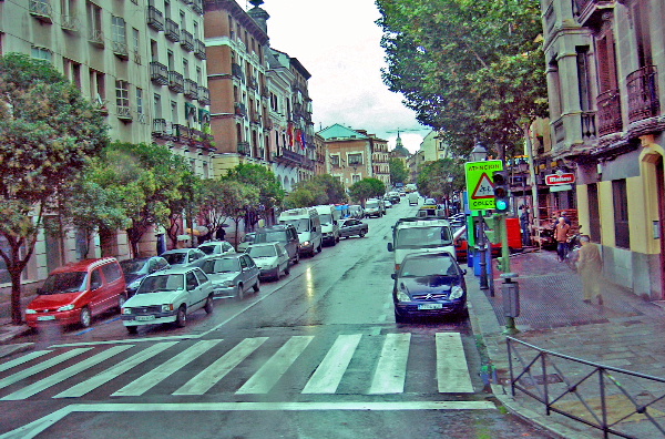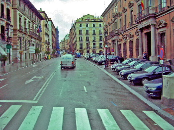 広場を離れて、街中へ。ここは、横断歩道が 広いのが目立つ。