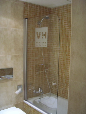 ホテルの情報を、バスの仕切りはカーテンでなく強化ガラス、なかなか