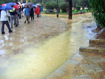 大雨?(日本では普通の雨)に、排水溝が追いつかない。想定してない?