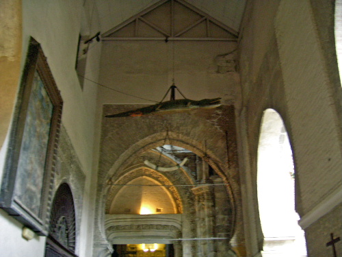 天井にはアフリカから貢物として送られた、鰐の剥製が吊るし