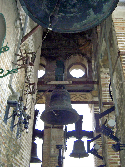 直径が1m程の釣鐘は、今は電動のワイヤーで動くようになっている。