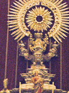 内部の金がまばゆい、豪華絢爛たる祭壇は、見ていると「生きて