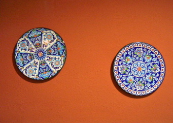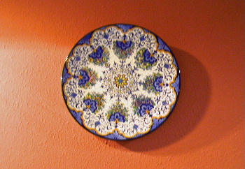 レストランの壁に掛けてあった絵皿、ブルーの使い方に個性がある。