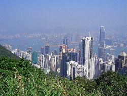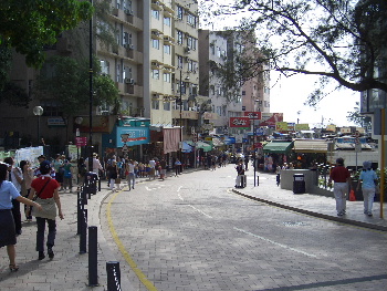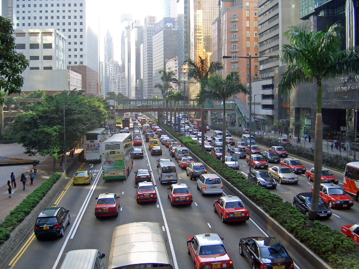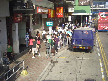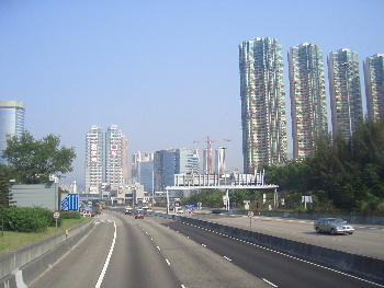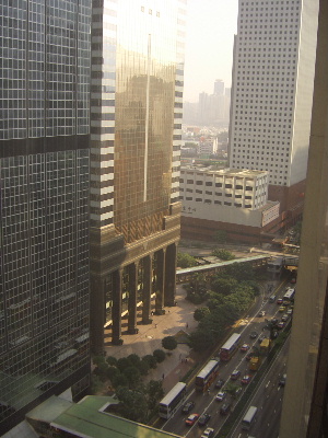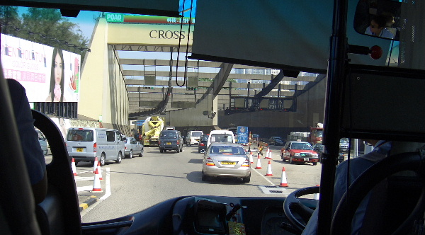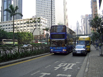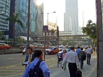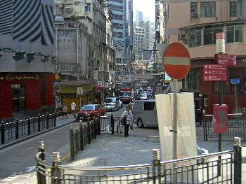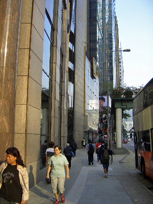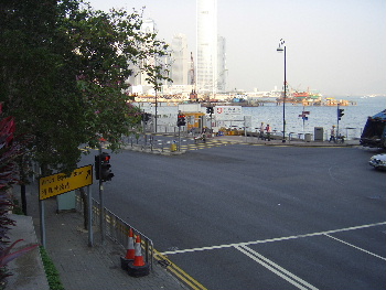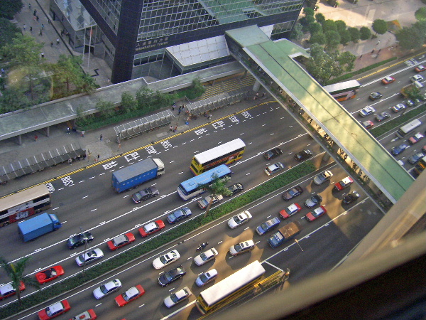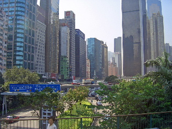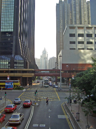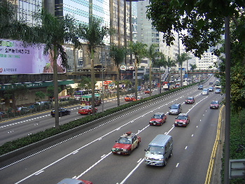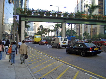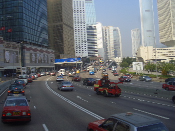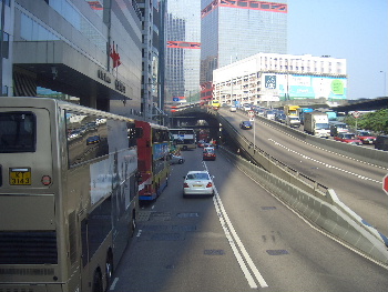 ここは香港のビジネス街の中心地、5車線の大通りがズド〜ンと貫く