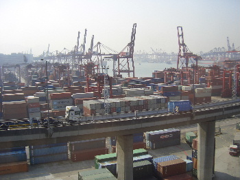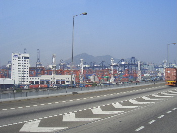 世界物流を担う、コンテナヤード、湾をぐるっと取り囲む、広大な規模!