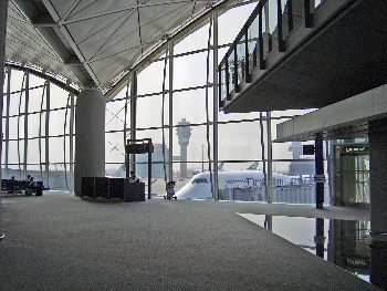 さらに西進すると、国際空港に到着、規模が広すぎるので、画面に入りきらない