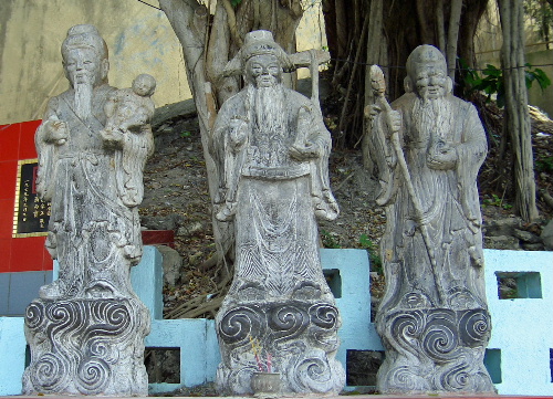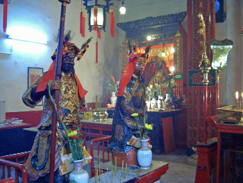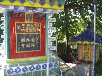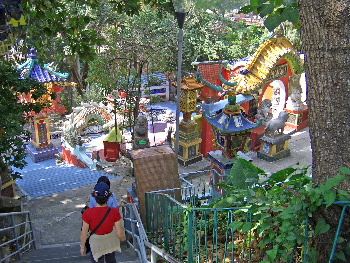 道路から、急な階段を降りると、そこは祭壇や祠、ゴテゴテの飾り物