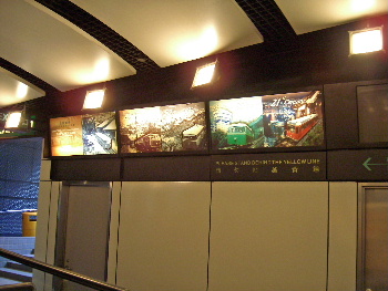 ホームの電飾看板には、歴代の車両の写真、現在は6世代もの