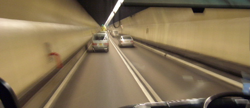 片側2車線のトンネルは、80km/h、車間距離は充分保たれている
