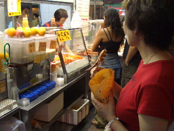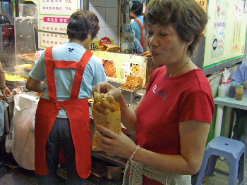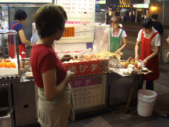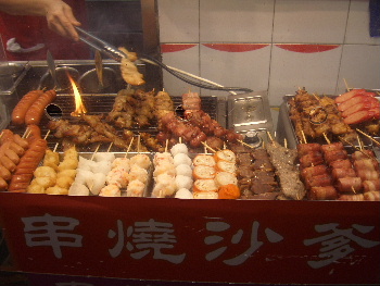 止まった。「しゅうまい」5個の串刺し=7元(約100円)「カステラ焼き」