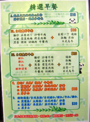 に「煎蛋」(目玉焼)にした。食べながらメニューを見ていると「自選・・」